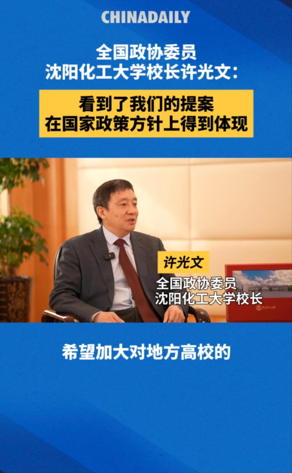近日,全国政协委员、贝博官网校长许光文接受《中国日报》专访。