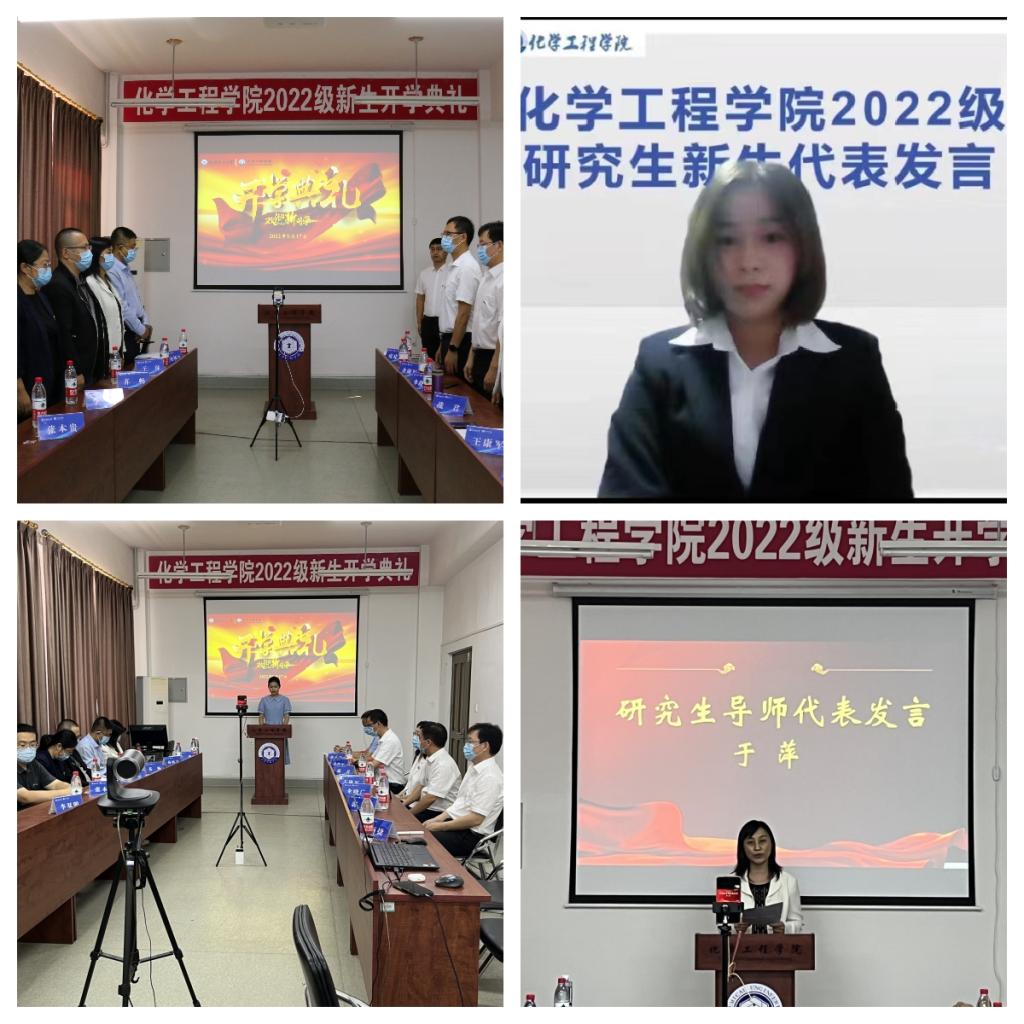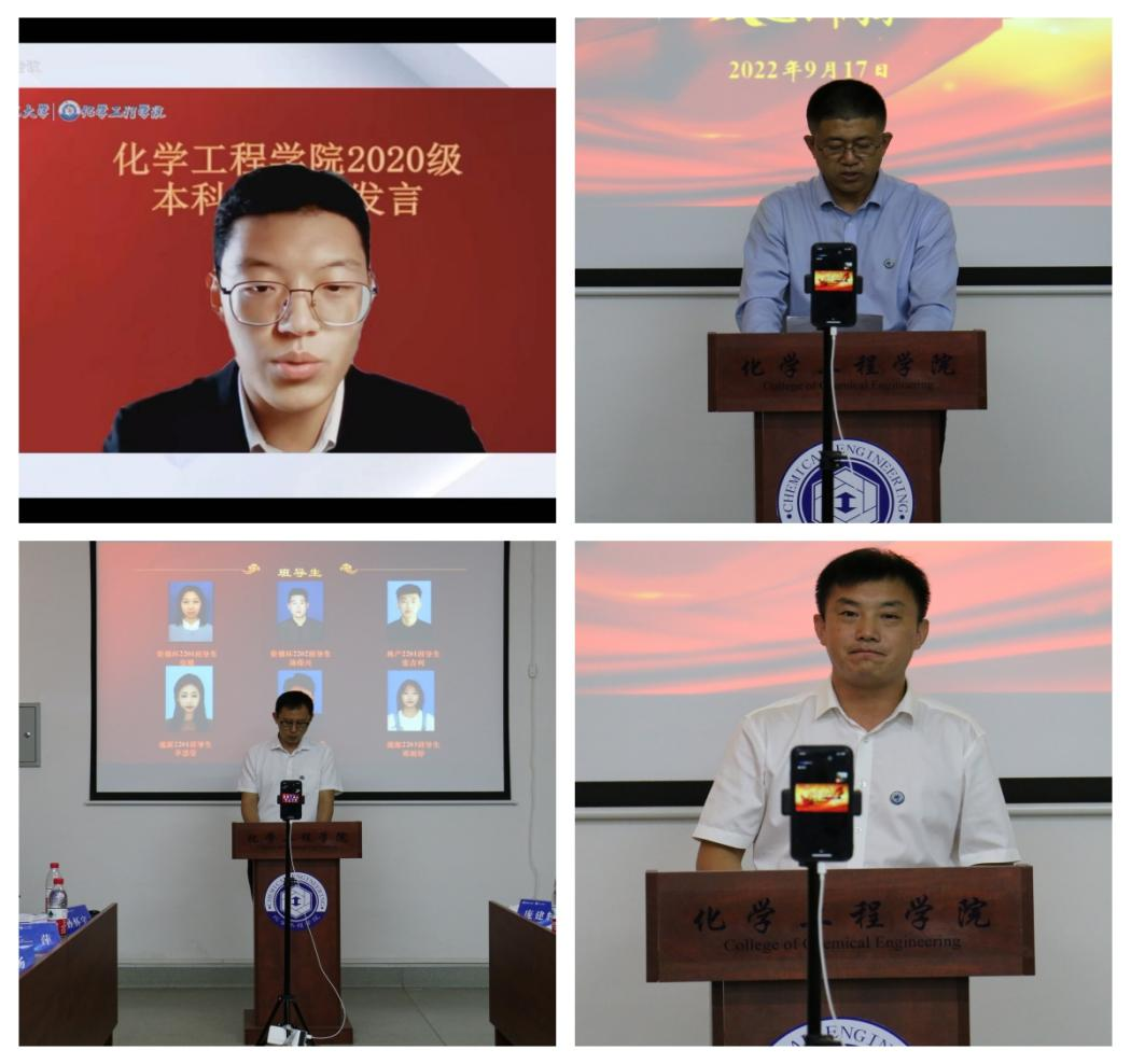身隔千里远,心聚“化功成”。为更好地迎接学院2022级新同学,培养新生对学校及学院的认同感和归属感。化学工程学院于9月17日线上分别召开2022级研究生开学典礼和2022级本科生开学典礼,来自全国各地的764名本科生和研究生分别通过直播的形式齐聚一堂,化学工程学院党委书记战君、院长王康军,副院长张志刚、副院长伞晓广、党委副书记余海军、各教研室主任以及新生辅导员庞建辉、岳帅、王丽捷参加典礼。开学典礼分别由学院副院长张志刚和2022级新生辅导员庞建辉主持。
