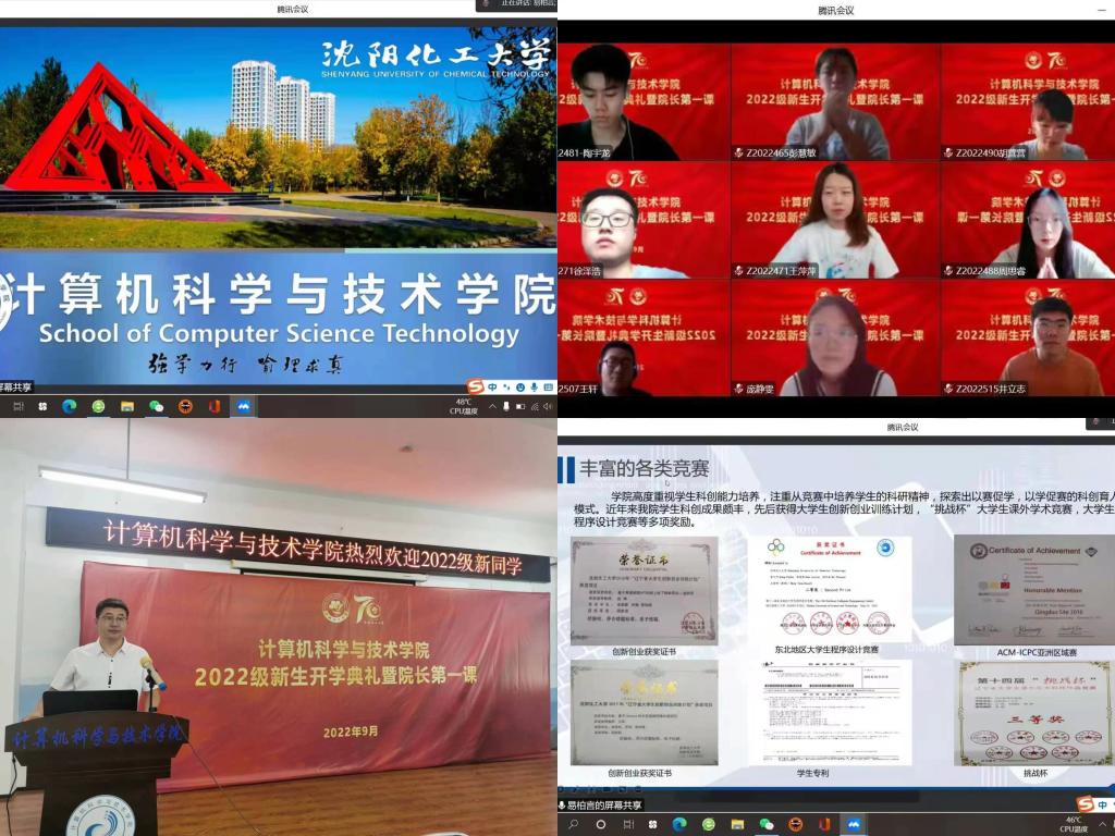 金色九月,硕果累累,新学期迎来了新力量。9月17日下午14时,计算机科学与技术学院于致本楼517会议室分别举行了2022级本科生和研究生新生线上开学典礼,计算机科学与技术学院党政领导王军、王立刚、张波、李莉、张丹,各教研室主任及全体辅导员出席典礼,会议由2022级辅导员易柏言主持。全体教师与2022级新生相聚“云端”,携手开启大学生活新篇章。