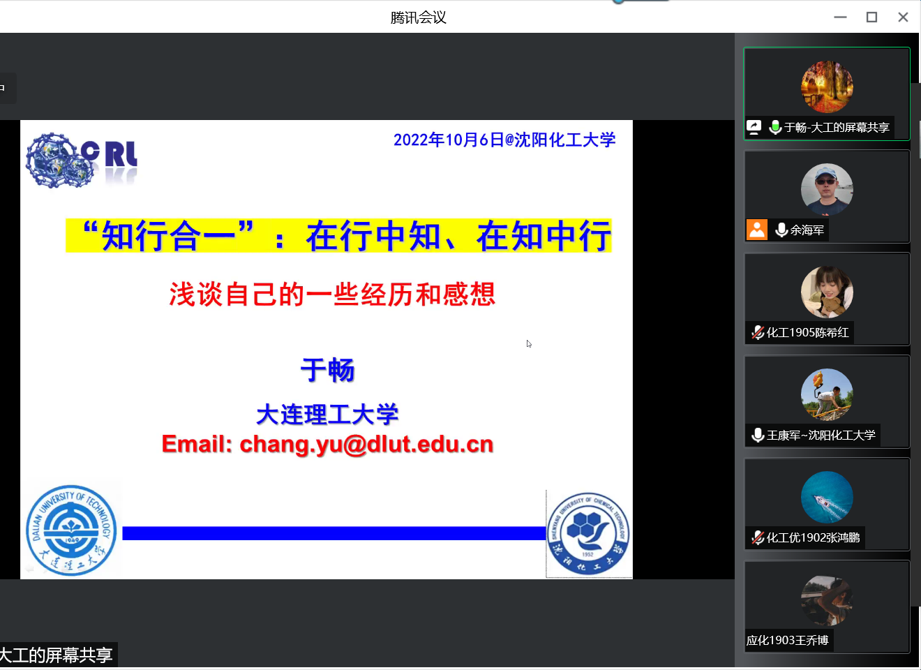 为庆祝建校70周年,化学工程学院举办校友讲坛系列活动。10月7日,通过云端召开“扬帆起航 共筑梦想”考研指导报告会,邀请了贝博官网化工工艺专业2001届优秀校友、大连理工大学化工学院教授于畅做交流报告。院长王康军、党委副书记余海军出席会议,我院2019级300余名考研学子聆听了报告,会议由党委副书记余海军主持。