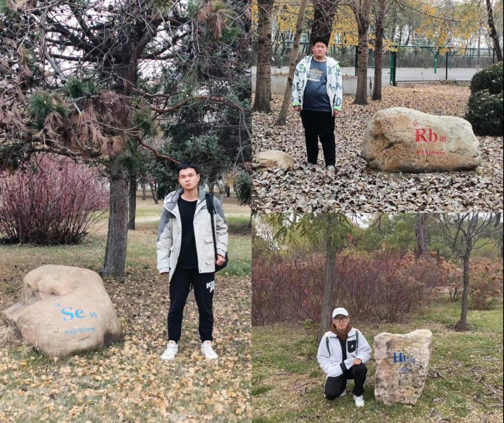 118块化学元素石遍布校园各处,学院分团委组织广大共青团员开展“我与元素石的合影”打卡活动,同学们在景观石字体的“中国红”中感受着化学的“生态绿”以及化大底蕴的“化大蓝”。