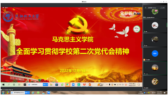 12月7日,马院理论学习中心组集中学习了BB贝博艾弗森官方网站第二次党代会的报告。学院领导班子通过集中学习,一致认为要紧紧围绕党的二十大精神和BB贝博艾弗森官方网站第二次党代会精神,将党的建设融通于立德树人根本任务和融汇于全面从严治党战略举措之中,进一步推进人才培养供给侧结构性改革和“三全育人”模式实践,进一步抓住学校腾飞发展的机遇、补齐短板、加强示范,实现学院高质量的发展。