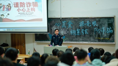 保卫处史立双科长介绍了贝博官网近期发生的几起诈骗案例,为同学们总结出案例特点。他强调这些案件的发生为给我们每名学生敲响警钟,骗子无孔不入,希望同学们在遇到银行卡外借、网络交友、乘坐黑车等情况时,要谨慎处理。受到威胁,要及时拨打报警电话。