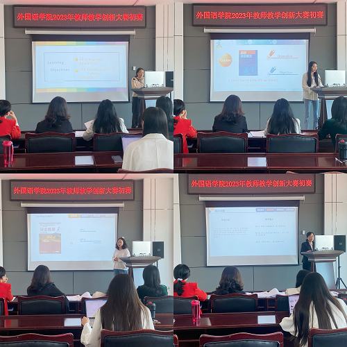 比赛开始前,外国语学院副院长崔晗对本次教学创新大赛的主题、目标和评分标准进行了讲解,希望各位参赛教师能够以赛促训、以赛促教、以赛促用,相互学习、共同进步,不断提升学院教育教学质量水平,促进教师队伍专业化发展。随后,参赛教师依次进行现场说课,说课环节结束后,学院评委对教师申报材料进行了细致点评,对于需要改进的地方提出宝贵意见和建议。最后学院评委进行现场投票,评选出推荐参加学校复赛人选。