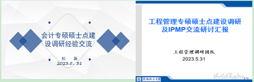 工程管理专硕研究生导师边晶梅副教授代表工程管理专硕调研团队,就赴南京大学、南京航空航天大学、南京林业大学调研工程管理专硕硕士点建设、教育部工程管理专业学位教指委IPMP国际认证研讨会经验,重点围绕IPMP国际认证和实践教学活动两大主题,与学院工程管理专硕导师团队进行了深入交流。会计专硕教育中心执行主任侯新副教授代表会计专硕调研团队,就调研江西财经大学会计学院、参加教育部会计专业学位教指委教学管理研讨会成果,重点围绕办学思路、课程开发与建设、论文把关、案例开发与案例大赛、实践环节、师资队伍建设等内容,与学院会计专硕导师团队进行了深入交流与热烈讨论。本次调研经验交流会形成的宝贵意见建议,将为下一步学院修订工程管理、会计专业学位硕士研究生人才培养方案提供智力支持。