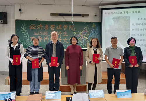传薪寄火新征程,淬砺致臻展风华。为全面落实党中央关于高校思想政治工作的指示精神,扎实推动全员育人、全过程育人、全方位育人格局,深入推进贝博官网“113”人才培养体系改革,充分发挥专业教师、高年级骨干学生在学生学习生活中的重要性。近日,经济与管理学院召开了2023级新生班导师、班导生聘任大会。学院班子成员、各教研室主任、全体学工办教师以及2023级新生参会。会议由2023级新生辅导员王怀主持。