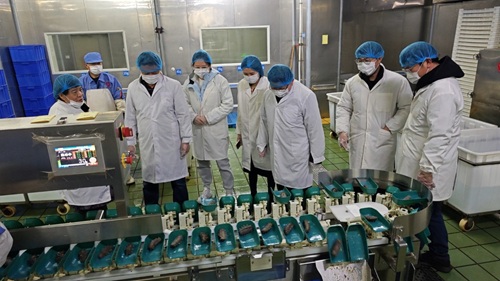大连晓芹食品有限公司董事长王晓芹对学院领导的到来表示诚挚欢迎。她简要介绍了公司发展历程、战略规划和发展理念,带领学校老师们参观了晓琴海参的全流程加工车间,并对学院近年来的发展成就感到自豪。她表示,作为化大学子,永远忘不了母校恩情,希望继续为母校和学院的建设添砖加瓦。