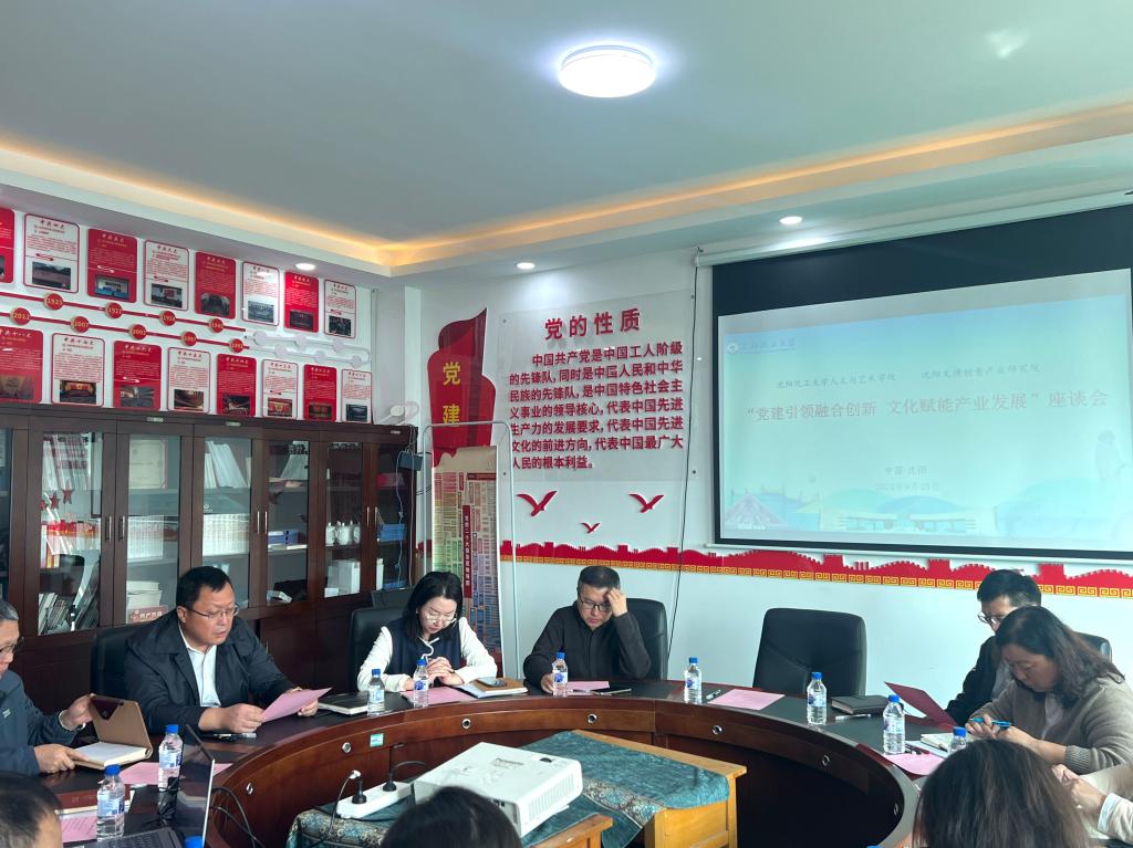 9月25日,人文与艺术学院在敬仲楼427会议室召开“党建引领融合创新 文化赋能产业发展”座谈会。沈阳文博创意产业研究院院长、沈阳市促进校友经济发展中心主任王雷等一行3人出席会议,人文与艺术学院领导班子及全体教研室主任参加会议。会议由学院党委书记周克刚主持。