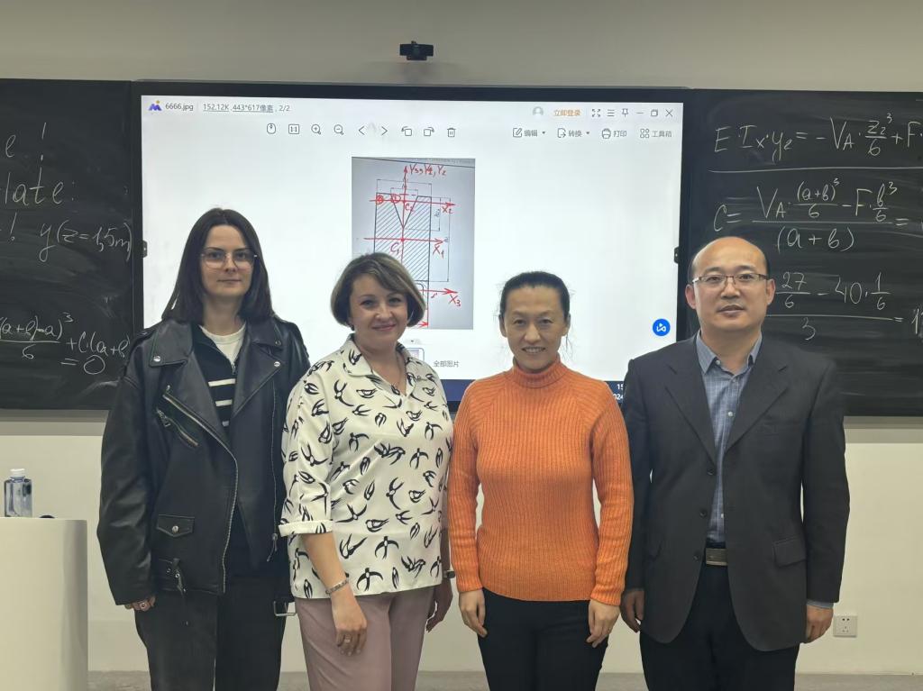 9月22日至10月15日,哈尔滨师范大学高等教育学专业孙芳副教授团队与贝博官网机械与动力工程学院《材料力学》课程中外教师联合授课团队开展了关于“中外教师‘同步’教学模式”的交流。孙芳副教授(图1,右二)团队自2023年5月起,与机械动力工程学院苏勇副教授和俄罗斯伊尔库茨克国立理工大学Perelygina Aleksandra副教授组成三方合作团队,共同开展教学研究。