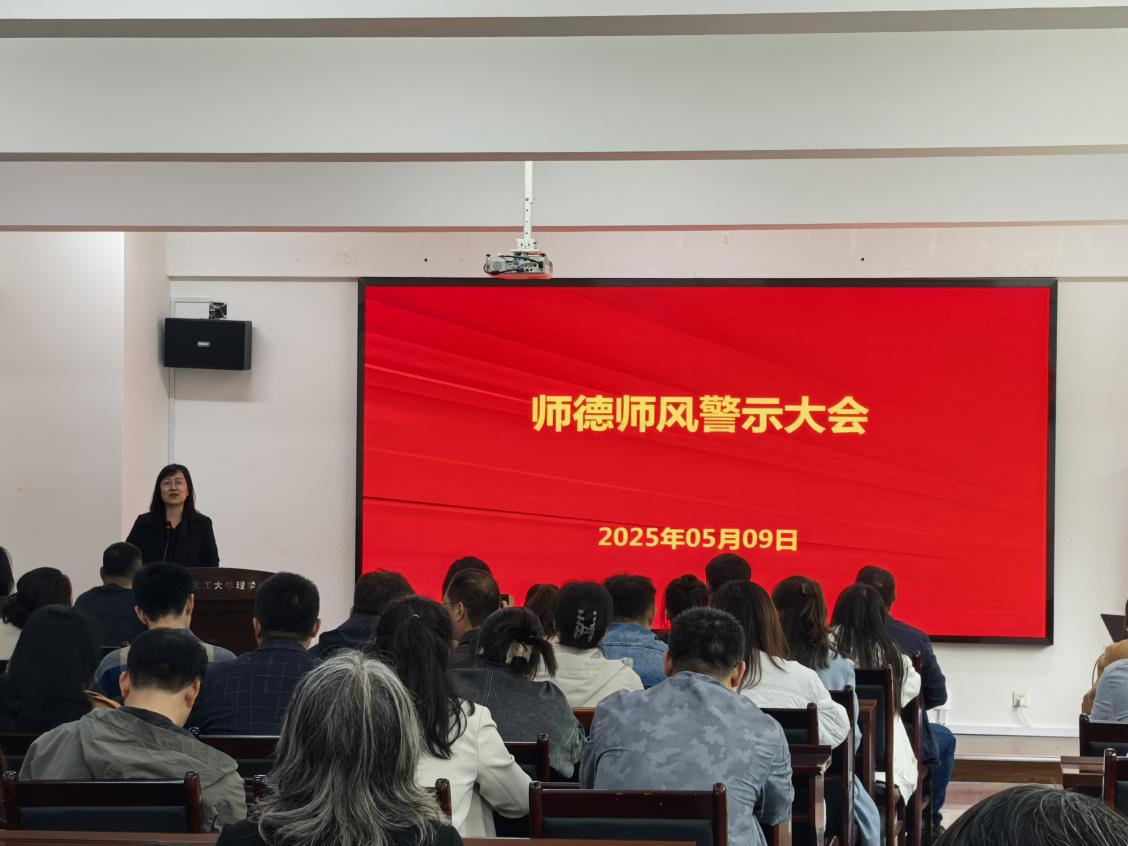 5月9日,理学院党委书记徐平就近期辽宁一所职高学生集体退网购服装致商家经济受损引发舆论的热议召开师德师风警示大会。她指出,教师应言传身教,传递正确价值观,学校作为教育主体,不仅要传授知识,更要重视品德教育,应引导学生树立正确三观。此次事件为学院师德师风建设敲响警钟,唯有将师德师风建设摆在教育工作的突出位置,筑牢教师队伍的道德根基,才能真正实现“为党育人、为国育才”的教育目标,培养出高素质人才。