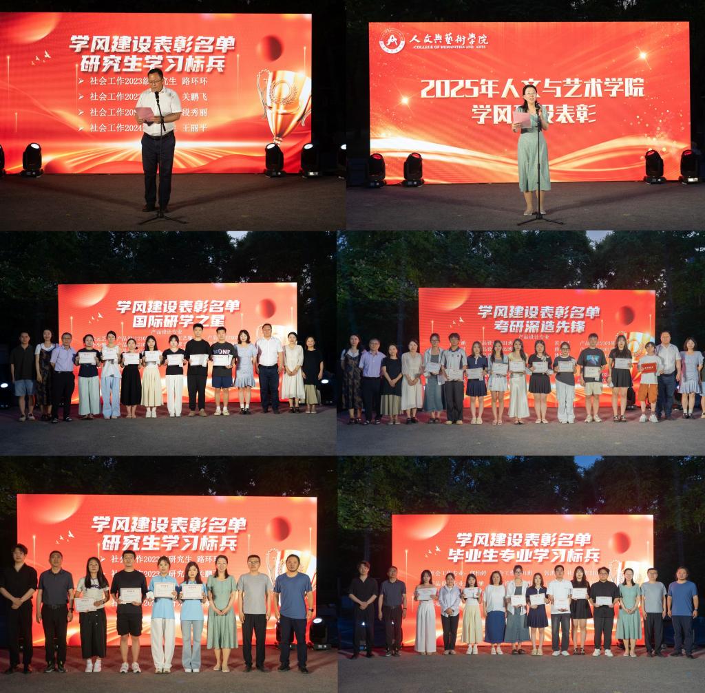 为送别2025届毕业生踏上追梦新旅程,留存珍贵的校园记忆,6月17日,人文与艺术学院“青春不散场 梦想再启航”2025届毕业生欢送会暨学风建设表彰大会于敬仲楼正门前广场盛大启幕。人文与艺术学院党委书记周克刚、院长李漫红、党委副书记于丰刚、副院长王立强、陈英杰,全体辅导员老师、部分教师代表,2025届毕业生及各年级学生共聚一堂,在夏夜微风中共赴这场青春之约。