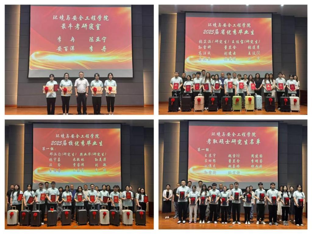 为总结毕业生大学历程,表彰优秀典型,凝聚奋进力量,6月16日,环境与安全工程学院2025届毕业生表彰大会在碧帆楼304会议室隆重举行。副校长秦高梧、环境与安全工程学院领导班子成员、各教研室主任、全体辅导员、教师代表及292名毕业生共同见证这一庄重时刻。会议由分团委书记吴化林主持。