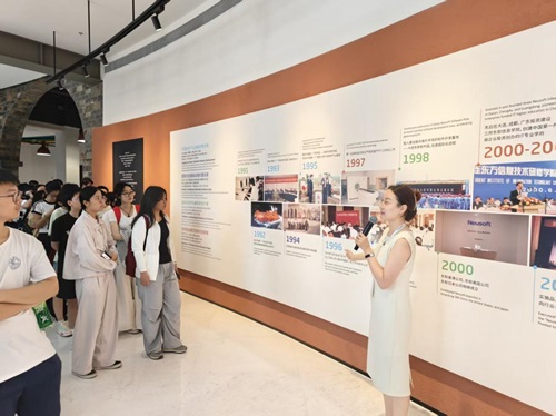 活动当日,同学们有序参观东软教育集团股份有限公司。在讲解员的引导下,深入了解公司的发展历程、业务布局及当前重点项目。从公司创立初期的筚路蓝缕,到如今在行业内的斐然成就,同学们见证了企业成长的蓬勃力量。