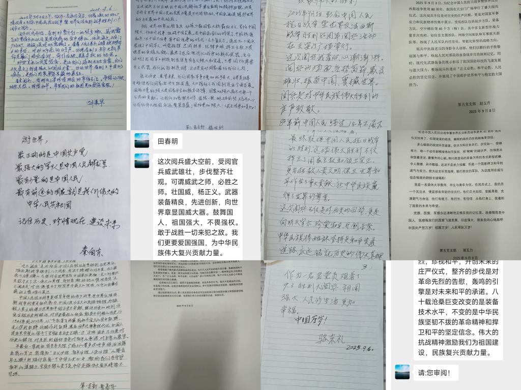 观看结束后,老同志们仍沉浸在激动的情绪中,积极提交阅兵观感,字里行间饱含对祖国的热爱和对历史的铭记。他们表示,要把抗战精神传递给更多人,激励年轻人为国家发展贡献力量,希望年轻一代能传承抗战精神,为实现中华民族伟大复兴的中国梦贡献力量。