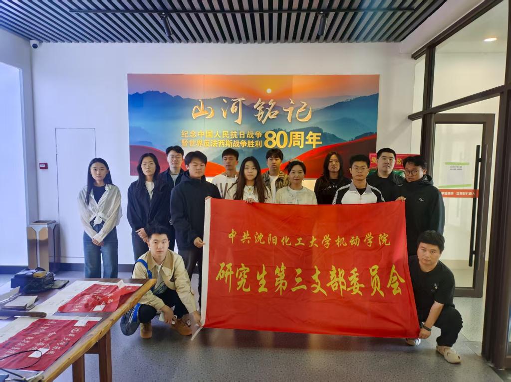 为铭记伟大历史、砥砺初心使命,9月24日,机械与动力工程学院研究生第三党支部全体党员前往“化工报国新青年·新时代雷锋精神育人中心”,开展了“睹物思史承薪火,鉴往知来践初心”为主题的党日活动,集体参观中国人民抗日战争暨世界反法西斯战争胜利80周年纪念展览。