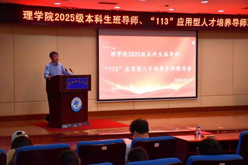 9月24日,理学院于图书馆五楼学术报告厅召开2025级本科生班导师、“113”应用型人才培养导师聘任大会。会议由理学院分团委书记张卓夫主持,理学院全体班子成员、学院受聘教师及2025级本科生参加会议。