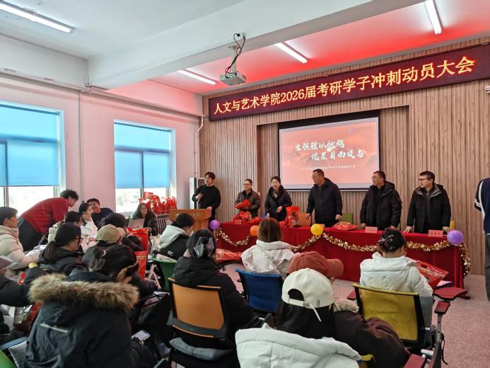 为切实帮助2026届考研学子坚定备考信念、优化冲刺策略,缓解备考压力,12月15日,人文与艺术学院在学院报告厅隆重举办“乘骐骥以驰骋,揽星月而题名”2026届考研冲刺动员大会。学院党委书记周克刚、院长李漫红、党委副书记于丰刚、副院长王立强、副院长陈英杰出席大会,22级本科生辅导员孙重阳主持会议,全体2026届考研学子参会。