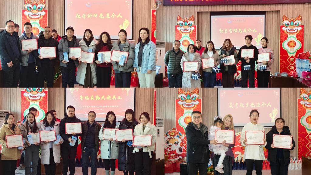 院长李漫红回顾了过去一年学院在人才培养、科学研究、专业建设、党建思政、文体活动、管理服务等方面取得的成绩,向全院师生致以诚挚的问候和美好的祝愿。学院领导分别为获得师德师风先进个人、科研教学先进个人、教育管理先进个人、课程教学先进个人、实践教学先进个人、课程思政先进个人、安全工作先进个人、晨晖早课先进个人、美育教育教学先进个人等颁发荣誉证书和奖品,表彰他们在各自岗位上的坚守与担当。