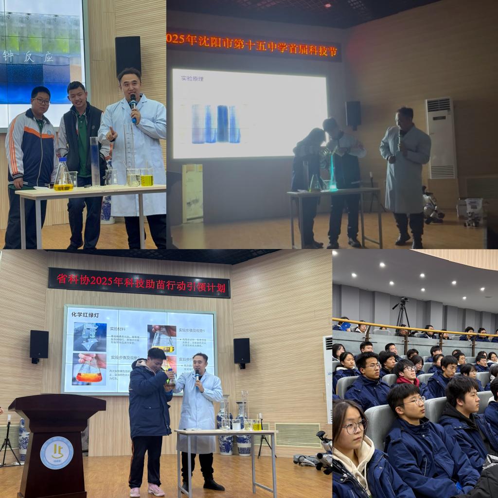 近日,贝博官网人文与艺术学院联合理学院师生组团参加沈阳市第十五中学科技节,把“大学课堂”搬进高中校园。此次活动作为“化工报国——培养小小化学科学家”的科普活动之一,社会工作专业教师张帆与理学院化学专业教师孙旭运用各学科的专业知识,通过链接高校优质教育资源,将高校优质资源下沉到中学教育一线,为第十五中学同学们设计出将化学知识与实践操作深度融合的科普活动。人文与艺术学院分团委书记胡明辉、理学院分团委书记张卓夫等师生参加活动。
