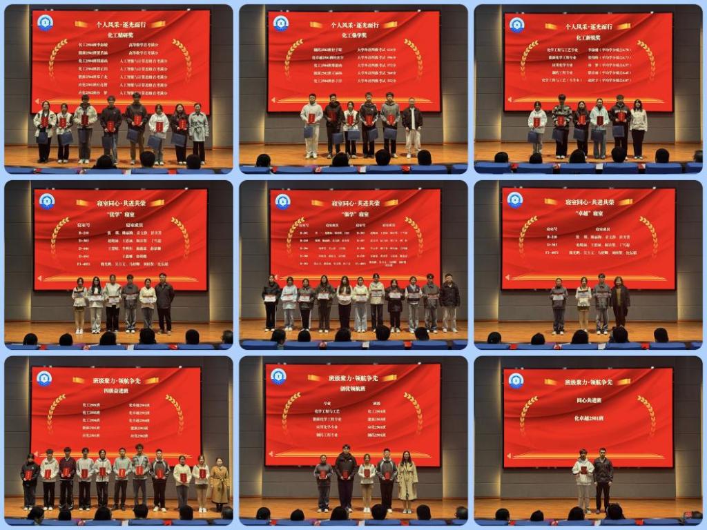 会上,学院党委副书记孙晓静全面总结上一学期学风建设成果,分析当前工作亮点与不足,鼓励同学们以饱满的热情投入专业学习。副院长宋兴飞宣读《化学工程学院关于表彰2025级本科学生学风建设先进集体和先进个人的决定》,大会对化工新锐奖、化工精研奖、化工强学奖等先进个人,优学寝室、强学寝室、卓越寝室等宿舍集体,以及四级奋进班、创优领航班、同心共进班等优秀班集体进行表彰,树立先进典型,营造比学赶超的良好氛围。