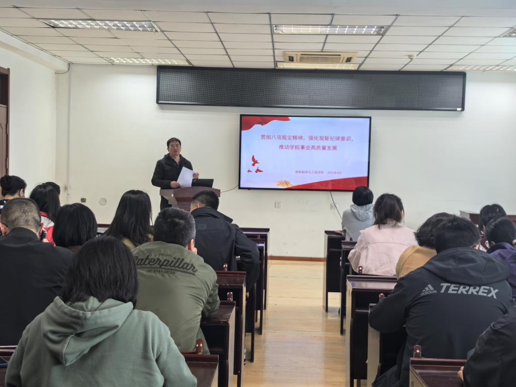 聚焦党规党纪,围绕宣传月活动主题。材料科学与工程学院党委以“贯彻中央八项规定精神,强化规矩纪律意识,推动学院事业高质量发展”为题,开展廉政主题党课活动,党课由学院党委书记主讲。