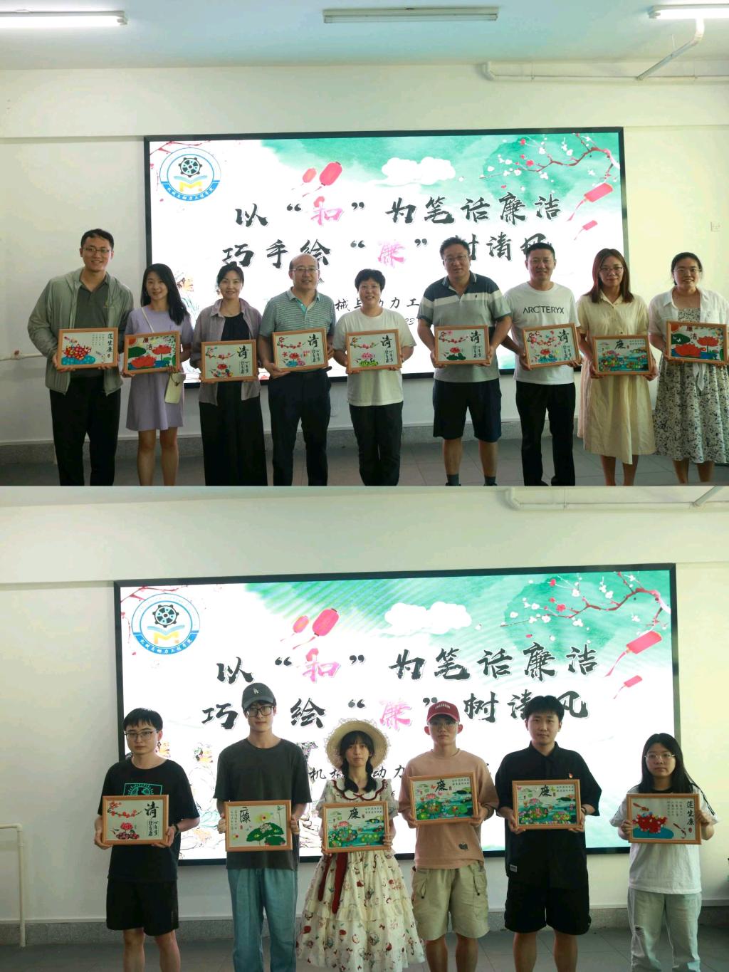 临近活动尾声,领导与教师、学生党员逐一上台与相框中裱好的作品拍照留念,在轻松且欢快的气氛中,以合影来定格这一意义非凡的瞬间。此次活动营造出浓厚的廉洁氛围,让大家不仅能受到廉洁文化的熏陶,还能促进自身廉洁意识和良好品德的形成。让廉洁成为一种风尚,推动校风院风建设净化,弘扬贝博官网廉洁精神。