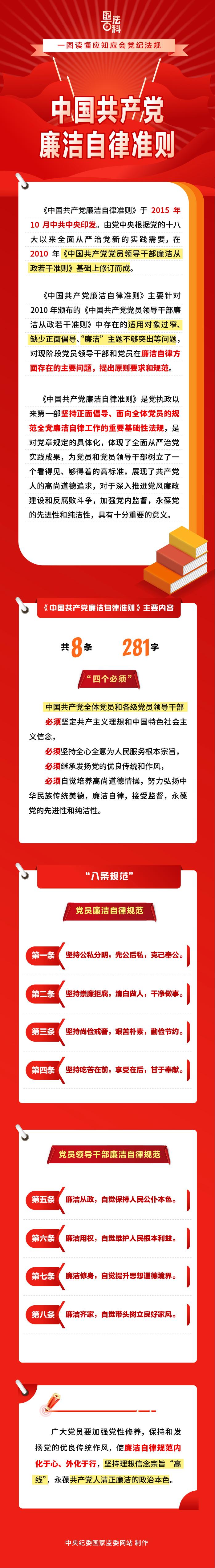 纪法百科·一图读懂应知应会党纪法规 中国共产党廉洁自律准则