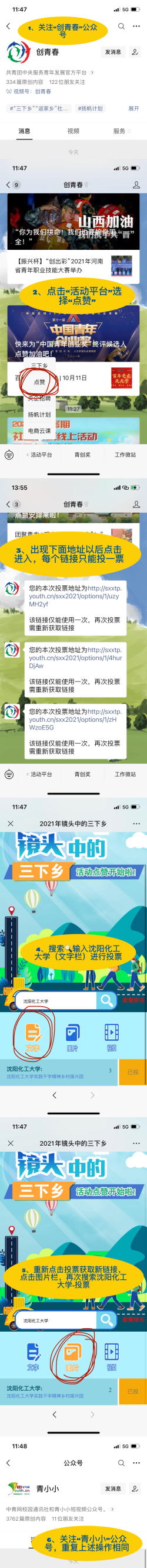 活动期间,关注团中央青年发展部“创青春”( ID : zgqncyxd ) 点击菜单栏“活动平台-点赞”;或关注中国青年网“青小小”( ID : zqwqxx )微信公众号点击菜单栏“点赞-镜头中的三下乡/返家乡”即可参与。