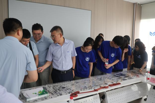 参观结束后,实践团的成员们与公司管理层和技术人员进行深入浅出的交流,了解了企业在人才培养、新材料和技术研发、实训基地建设以及科研成果转化等方面的努力,围绕橡胶工业发展等话题与同学们共同探讨,这些交流让师生们对橡胶行业的现状和未来发展有了更深入的认识,期望青年们能将实践内容融入日常专业学习中,将创新意识带入专业设计中,为科技强国注入青春活力。