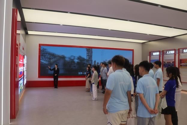 一走进产业园,草木葱茏的绿化景观与先进化工设备错落有致的排布,不愧是首批国家级“绿色工厂”,37万平方米的绿化面积,把厂区变成了别具一格的景区。实践团队先后参观了石化厂区、炼化厂区、乙烯厂区,并进入到联合运营中心实地观摩。