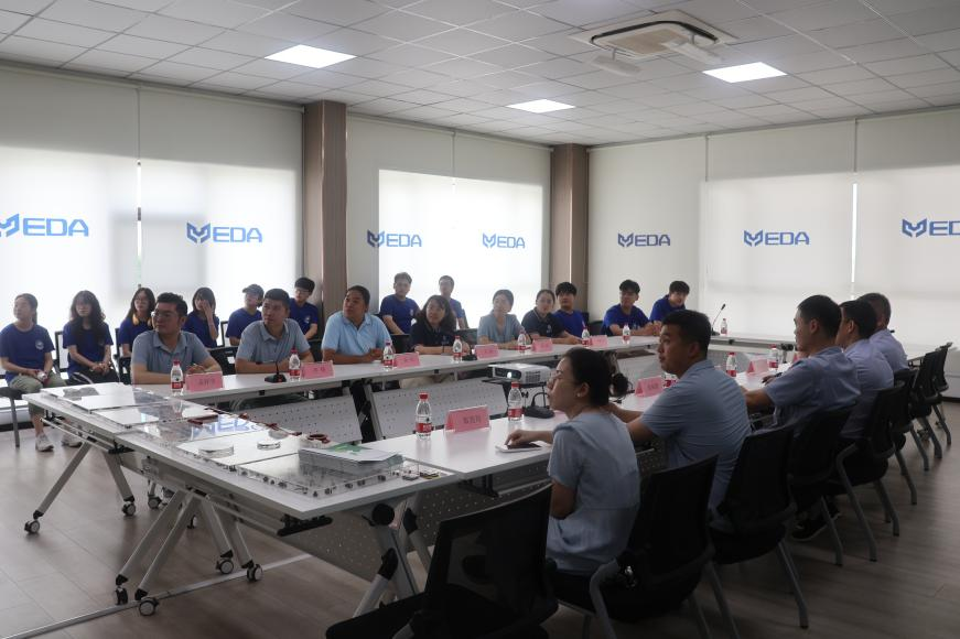 在大连益大总部会议室,人力资源部经理刘霞分别从企业文化、公司概况、组织架构、企业荣誉、生产设备等角度全方面立体化的介绍益大橡胶,让实践团成员更好地了解现代化制造业工厂的风采。