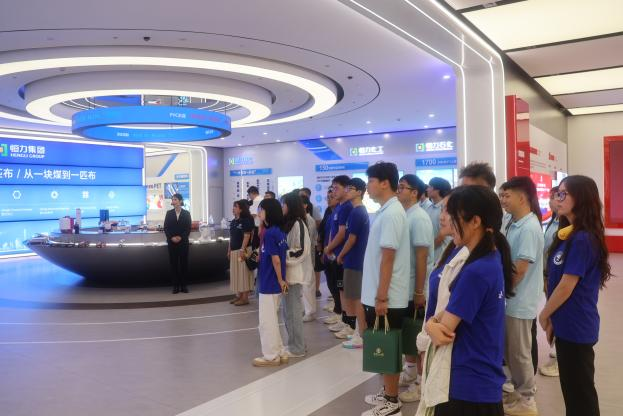实践团成员通过参观了解到恒力石化作为世界500强企业恒力集团的核心上市子公司,主营业务囊括石油炼化、石化以及聚酯化纤全产业链上、中、下游业务领域涉及的 PX、 醋酸、PTA、聚酯切片、民用涤纶长丝、工业涤纶长丝、聚酯薄膜、工程塑料的生产、研发和销售,是行业内首家实现“原油-PX-PTA-聚酯”全产业链一体化经营发展的企业。实践团成员感受到五百强企业的发展现状,开拓眼界。