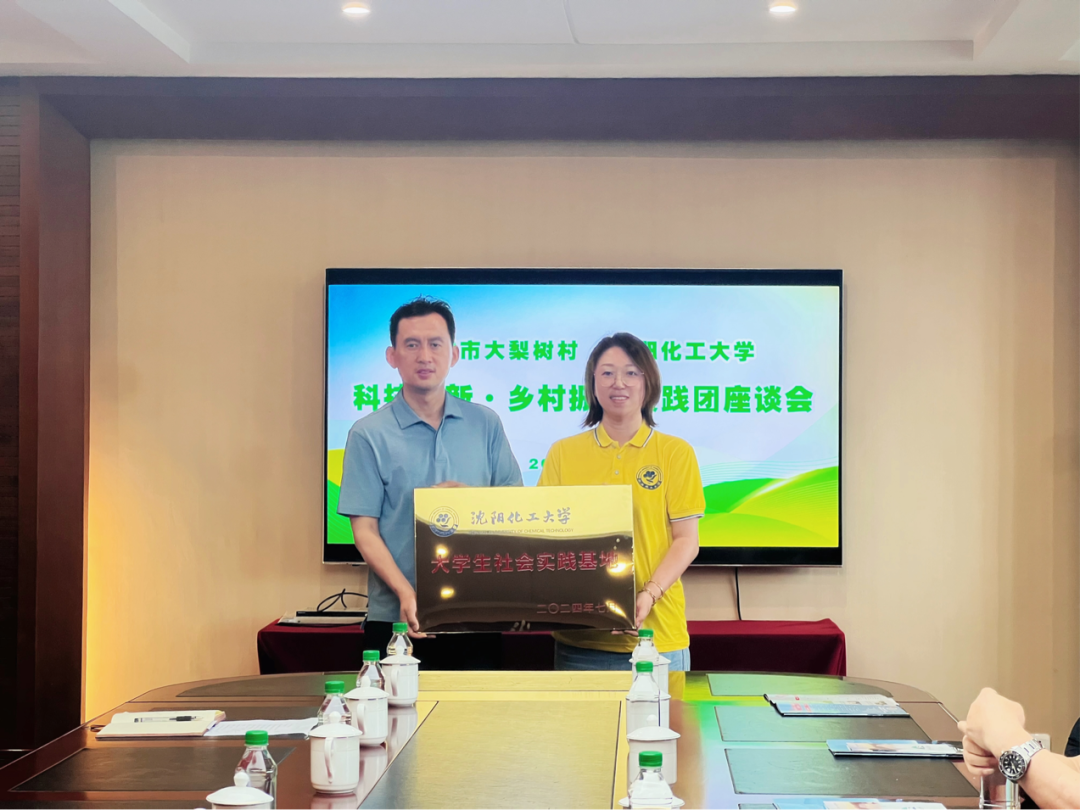 随后,学校团委副书记关婷与大梨树村党委书记毛正新共同完成社会实践基地授牌仪式。毛正新书记还为实践团成员讲授了一堂生动的思政课。他介绍了大梨树村脱贫致富、实现振兴的发展历程,深情回忆了老书记毛丰美带领村集体艰苦创业的先进事迹,重点讲述了大梨树村农工商旅一体化发展、二次创业腾飞的乡村振兴故事。他指出,青年的闯劲、学识、热情在农村发展和乡村振兴中不可替代,鼓励青年朋友要专业专精、敢闯敢拼,积极发扬大梨树的“干”字精神,苦干实干巧干。会后,人文与艺术学院产品设计教研室主任刘雨佳与大梨树村分管旅游开发的负责同志就文创产品设计和研究进行深入交流。