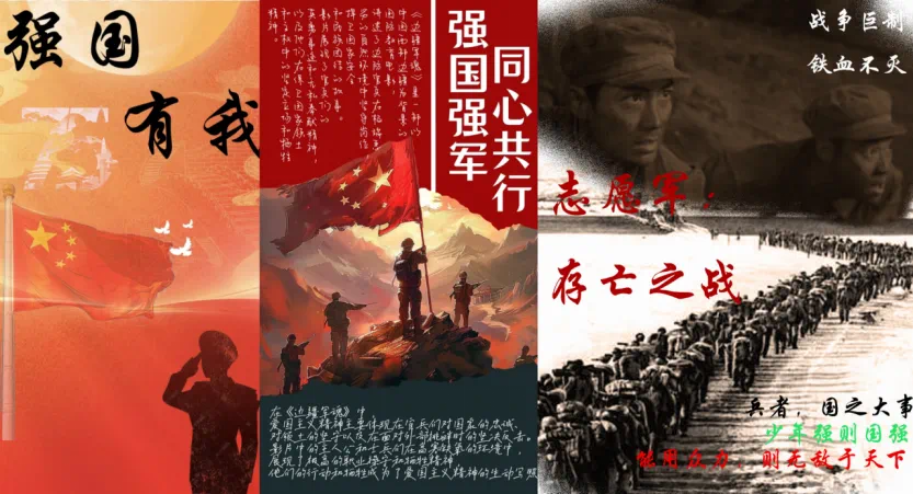 同学以“强国强军,同心共行”为主题进行创作,精心设计电影海报。通过海报这一德育宣传方式,发挥校园潜移默化的育人作用,对学生们起到积极的影响。