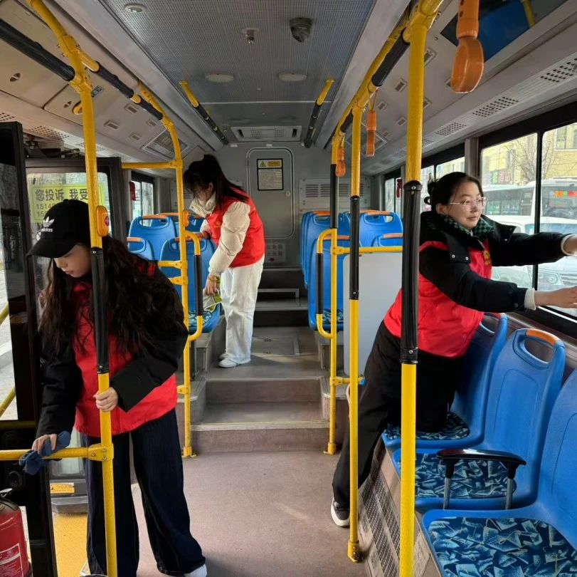 青年突击队队员们对公交车的座位和车身轮廓进行了全面清洁。此次活动,不仅为乘车居民带来便利,队员们也在实践中加深对雷锋精神的理解。