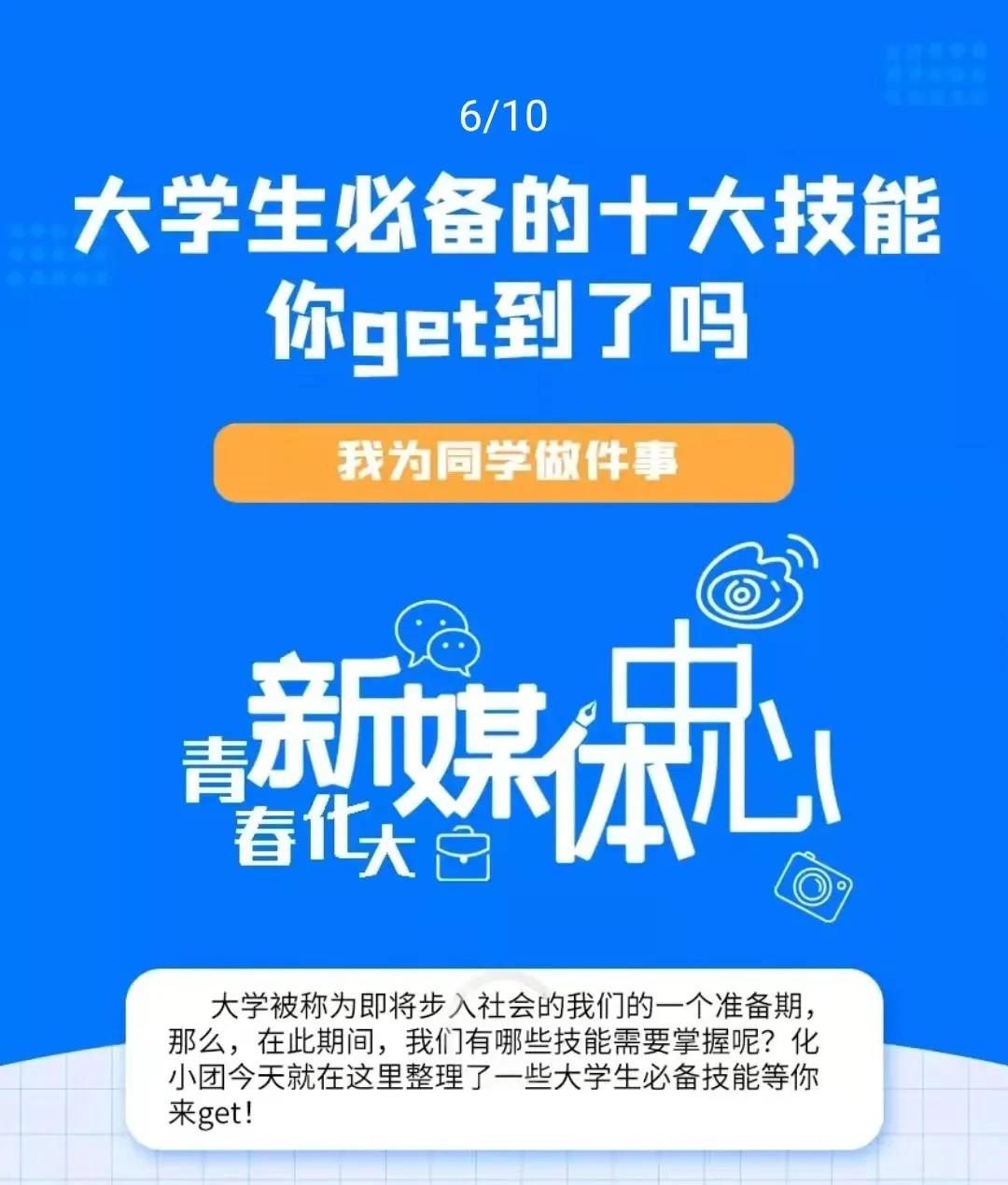 青春化大新媒体中心为大家总结了一些大学生必备技能,希望大家更从容地步入社会。如:Photoshop、PowerPoint、Excel、Premiere、Word、学好英语口语、读书能力、学会一项爱好小技能、练好自己的字、练好自己的口才。从这几项技能的掌握好处和部分需要掌握的高级功能来推荐大家努力掌握这些技能。