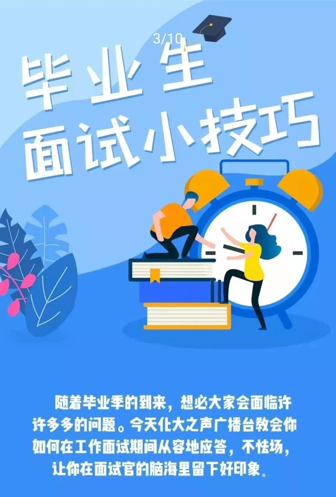 化大之声广播台为大家准备一些方法,希望大家在工作面试期间从容应答,不怯场,在面试官心里留下好印象。并提出在面试中成功的要素有其三,一是技巧,二是心态,三是对于专业知识的掌握。三者皆备,才能在寻找工作的面试中处于不败之地。化大之声广播台希望毕业生入企面试成功,找到适合自己的工作。