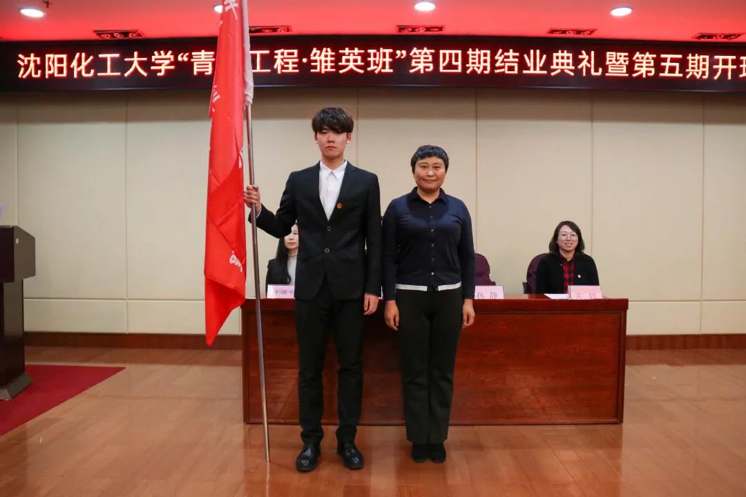 孙静老师为第五期雏英班授旗,第五期学员代表接旗。