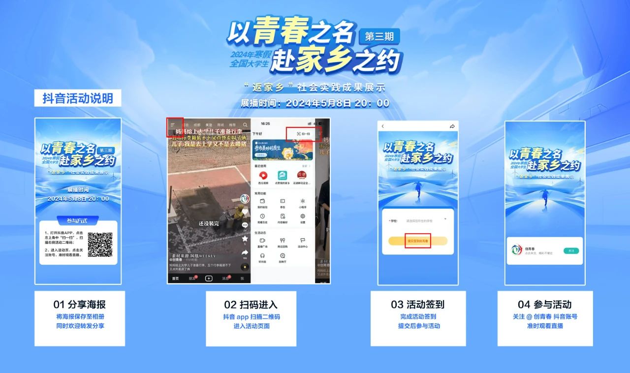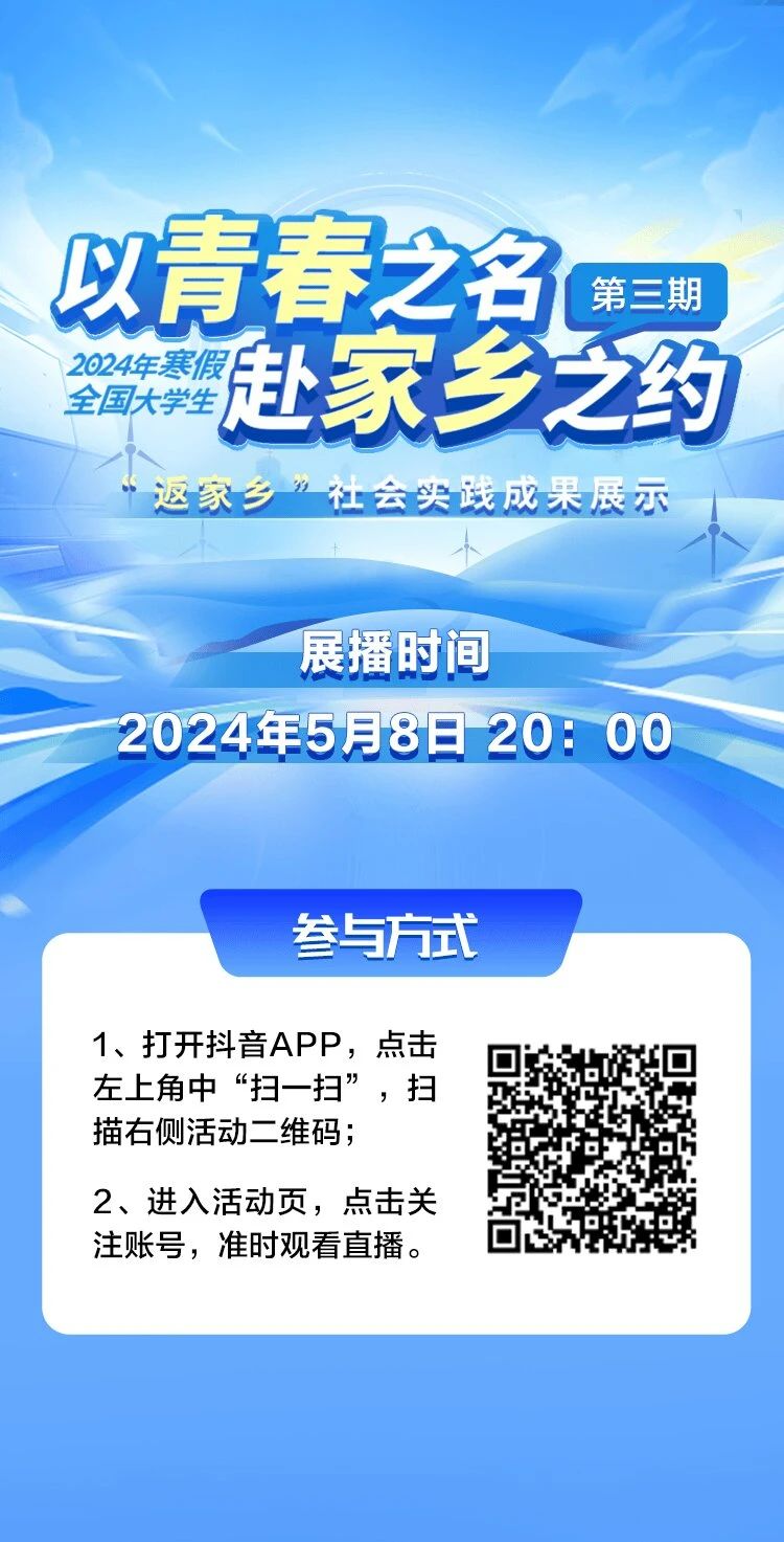 2024年全国大学生“返家乡”社会实践将面向全国31个省区市及新疆生产建设兵团全面推开,通过搭建在外学子与家乡常态化联系的实践桥梁,引领广大青年学子在乡村振兴、县域改革、人才引智、招商引资、就业创业等方面建功立业,切实推动“返家乡”社会实践工作深度融入地方党政工作大局。团中央青年发展部面向全国组织开展“以青春之名 赴家乡之约” 2024年寒假全国大学生“返家乡”社会实践精彩内容展播活动。向更多人展现大学生们用实践影像的方式投身全面建设社会主义现代化国家火热实践的青春风采。