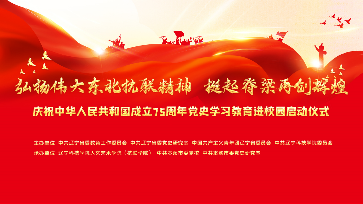 9月26日,由中共辽宁省委教育工作委员会、中共辽宁省委党史研究室、中国共产主义青年团辽宁省委员会、中共辽宁科技学院委员会等单位共同开展的庆祝中华人民共和国成立75周年党史学习教育进校园启动仪式暨辽宁青年党史理论宣讲团首场展演活动在辽宁科技学院举行。本溪市委书记吴澜出席启动仪式并致辞,辽宁省委党史研究室主任宿建军出席仪式并讲话,共青团辽宁省委书记张鹏出席启动仪式,辽宁科技学院党委书记赵毅主持启动仪式。
