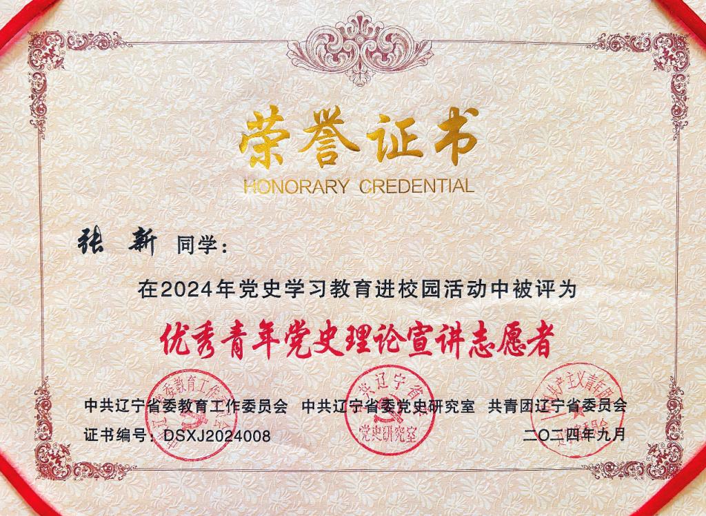 贝博官网研究生会执行主席、“化工报国”大学生理论宣讲团成员、化工研究生202203班班长张新作为主讲人参与活动,并受聘为辽宁青年党史理论宣讲团成员,被授予辽宁省第一批优秀青年党史理论宣讲员荣誉证书。