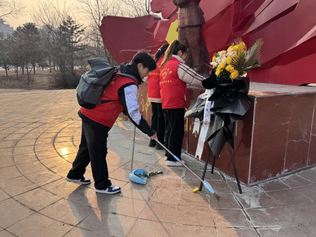 队员们对社会主义核心价值观广场的地面进行了清扫,仔细清理了落叶、纸屑、烟头等垃圾,确保广场地面干净整洁。