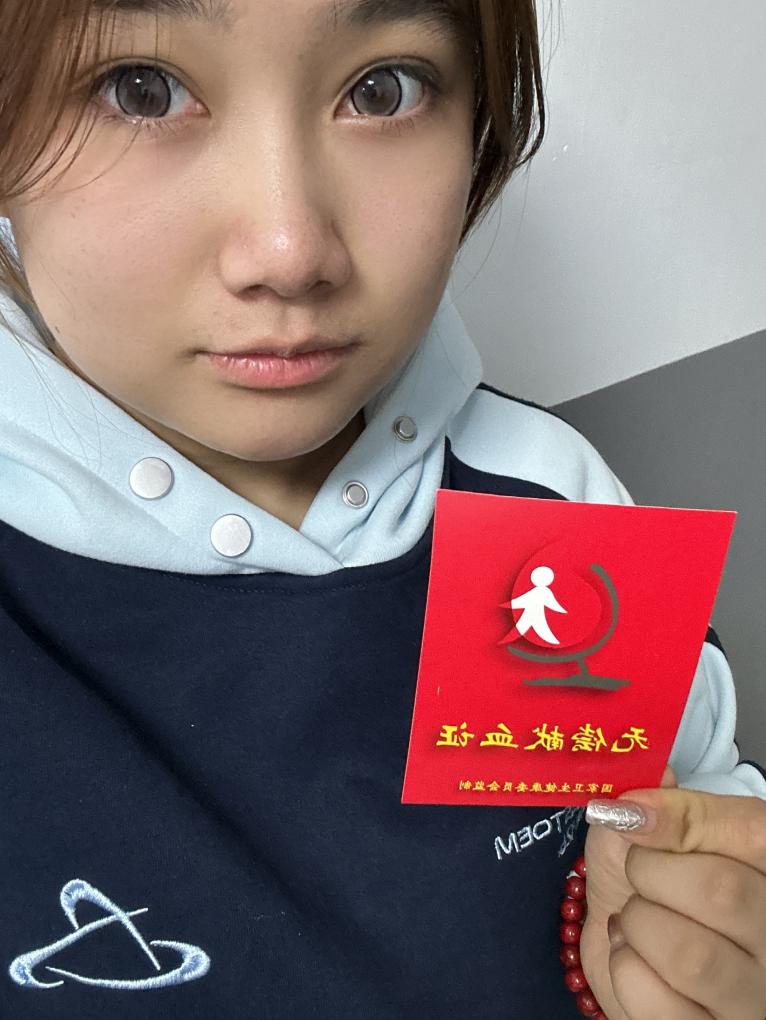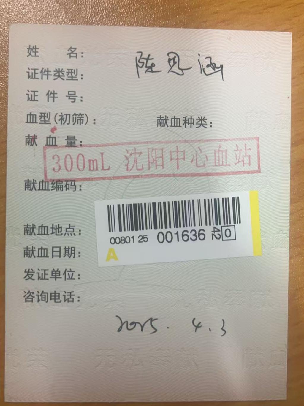 这是我第一次参与献血,此前心中总有担心、害怕,这次决定迈出这一步,努力为社会做出贡献。走进献血车后,我发现其实并没有想象中的那样可怕,心态异常平稳。医护人员的动作迅速且专业,不知不觉中流程顺利地进行了下去。随着血液缓缓流出,我想到这些血液可能会帮到有需要的人,一种庄严的责任感与庆幸感油然而生。献血的过程很快就结束了,我甚至有些遗憾没有多献一些,看到鲜红的献血证,我的心里非常自豪,充满了成就感。这次经历不仅仅是我个人的勇敢尝试,更是我与社会搭建起的爱与帮助的桥梁,是一次心灵的洗涤与灵魂的升华,让我对生命更加敬畏与感激、更加珍惜生命,更愿为社会做出更多贡献。