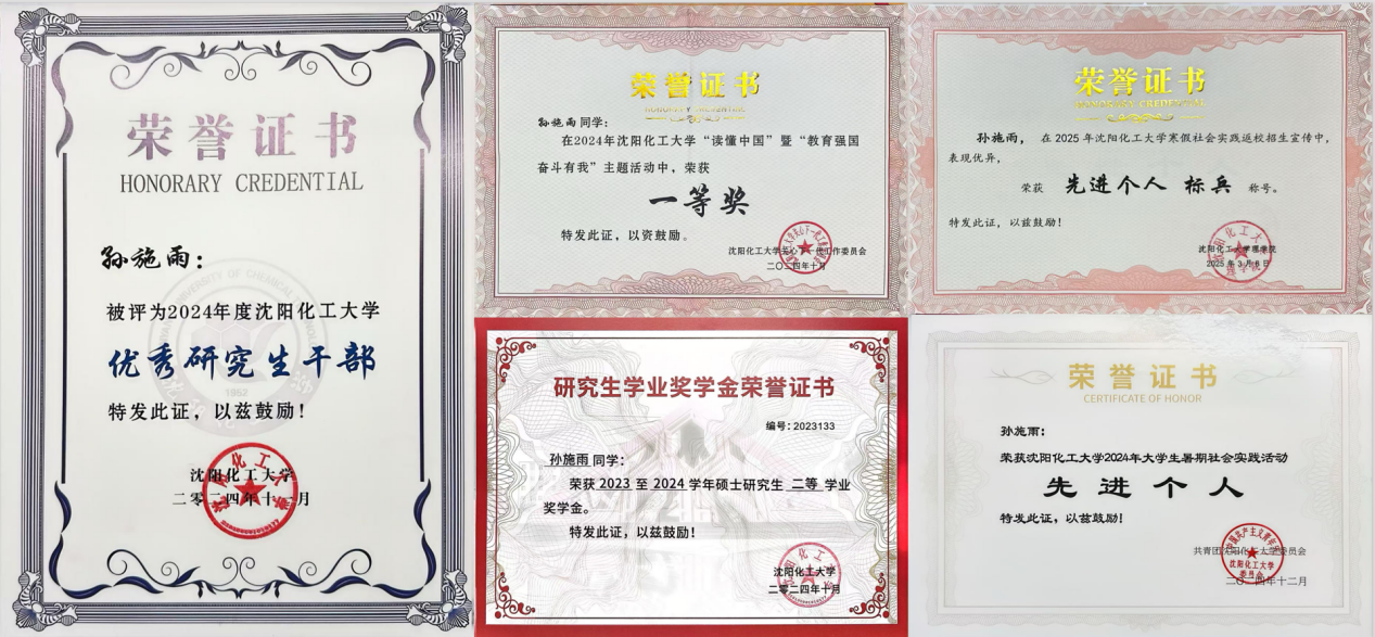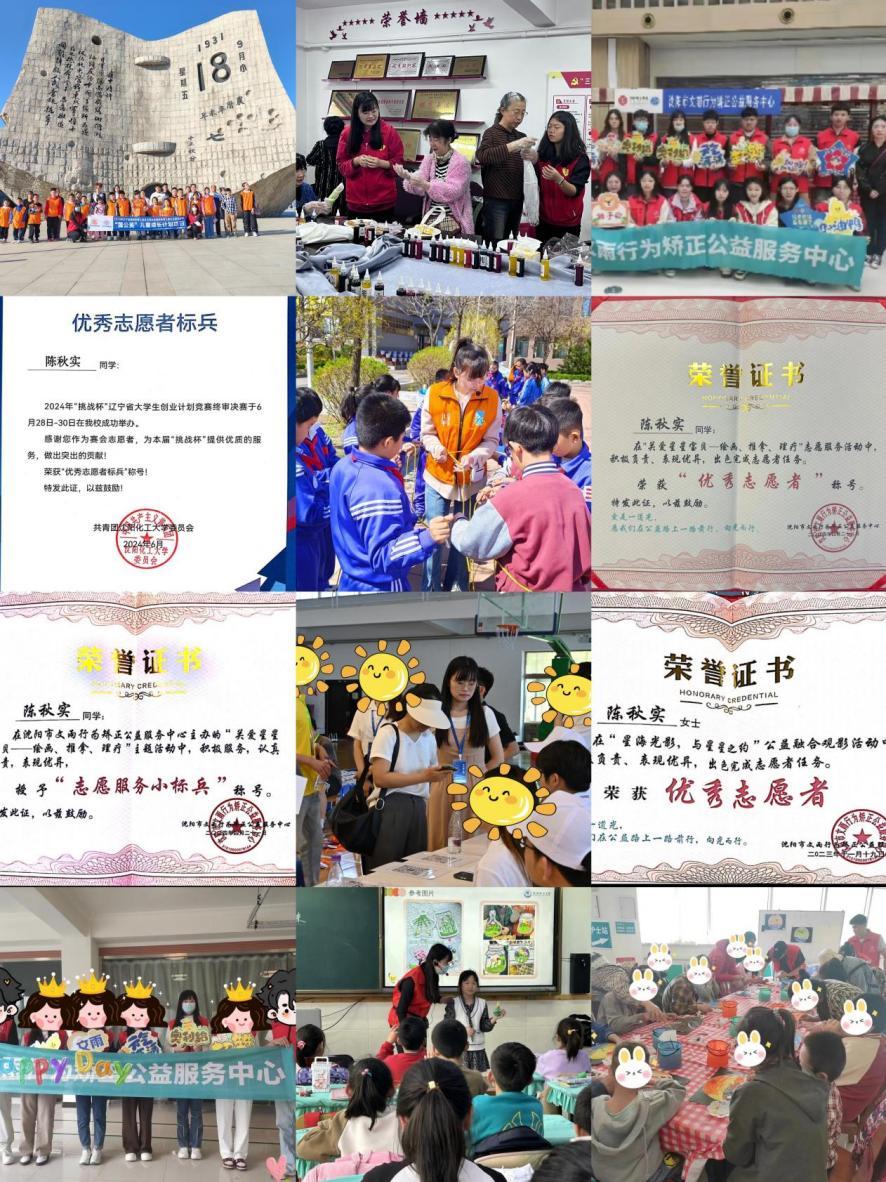 2023年她主动投身于“大青小学支教”“红领巾心向党云支教”等教育帮扶项目。在支教过程中,她充分发挥自己的专业优势,用一个个生动有趣的化学实验,带领小朋友们敲开化学魔法世界的大门。2024年雷锋纪念日期间,她走进大青街道创新社区,化身“环境守护者”;在百人体操比赛中,她活力四射,尽情展现青春风采;在沈阳市“大安全短视频大赛”中,凭借出色的表现荣获优秀奖;组织参加2024年BB贝博艾弗森官方网站“读懂中国”暨“教育强国”活动,作品《师者如光,微以致远》荣获校一等奖。