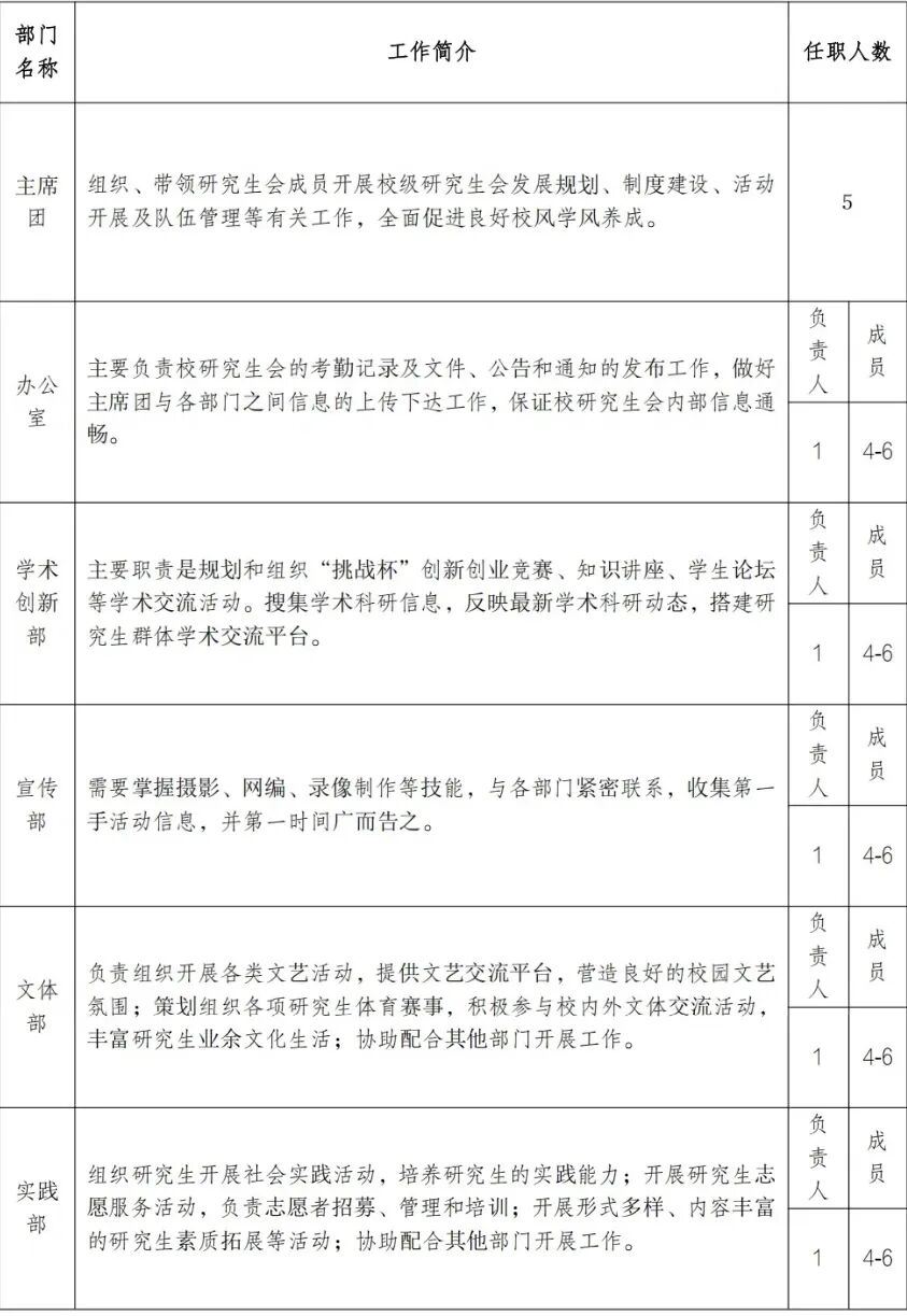 2.申报学生会各部门负责人类别者,原则上为 2024 级全日制在籍研究生;