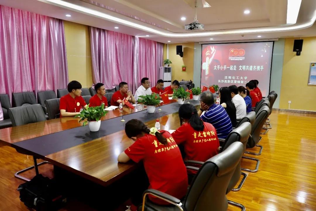 根据学校2021年大学生暑期社会实践总体部署,党史学习实践专项—“重走雷锋路,赓续共产党人精神血脉”实践团队,在BB贝博艾弗森官方网站党委委员、党委宣传部部长肖于波老师的带领下,于7月25日上午,来到了雷锋生前母校——湖南省长沙市高新区雷锋第二小学。该校党支部书记李寿颐及副校长刘心等5位领导热情接待了化大师生,双方开展了“大手小手一起走,文明共建齐携手”主题座谈会。
