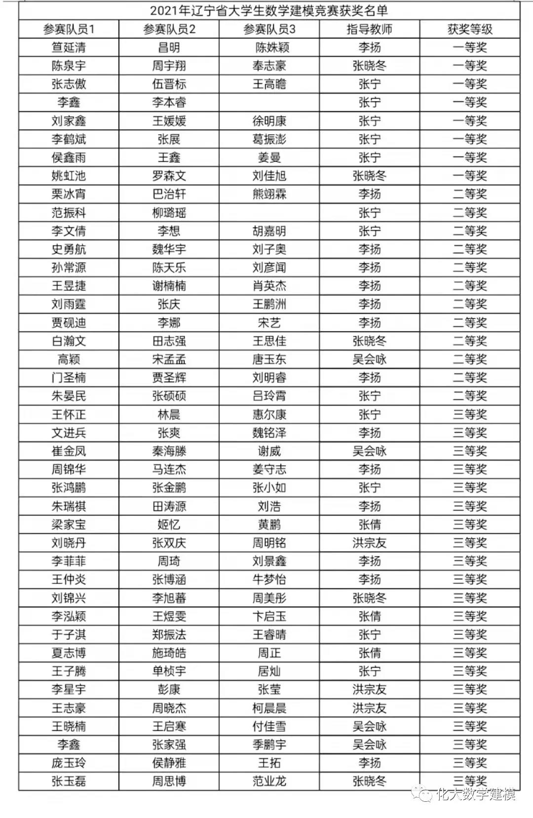 在创新创业学院、团委、理学院建模指导小组的支持与指导,以及相关学院和职能部门密切配合,贝博官网学子在2021年辽宁省数学建模竞赛中喜获佳绩。荣获辽宁省一等奖八项、二等奖十二项、三等奖二十一项,共四十一项奖项。具体获奖情况如下所示: