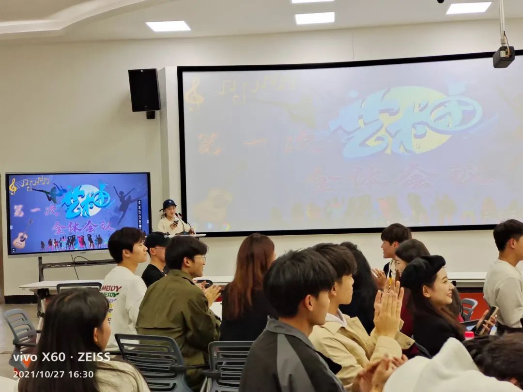 11月3日,2021年度大学生艺术团第一次全体大会在创新创业学院四楼演播大厅召开。