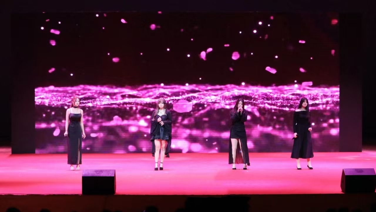 在聚光灯的拥抱下,歌声悠悠响起,由大学生艺术团的同学们带来的《刻在我心底的秘密》和《我的秘密》如同一封缓缓展开的情书,带着无尽的温柔与惆怅萦绕心间。