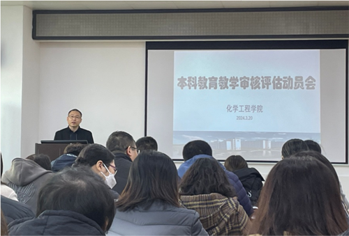 为迎接新一轮教育部本科教育教学审核评估工作,推动学院教育教学高质量发展,3月20日,化学工程学院在稚川楼310室召开了本科教育教学审核评估动员会,部署新一轮审核评估工作。化学工程学院全体教师参加。会议由党委书记战君主持。